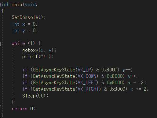 GetAsyncKeyState함수는 키입력을 받는 함수이다.