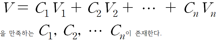 선형결합 : 벡터들을 스칼라배 해서 V를 만드는 스칼라값들이 존재한다.