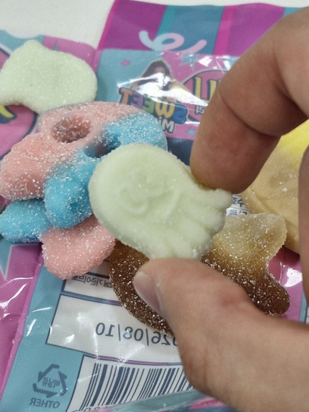 그리고 설탕 가루가 뿌려져 있지 않은 타원형 젤리 두 친구는 별로 제 취향은 아니었습니다.