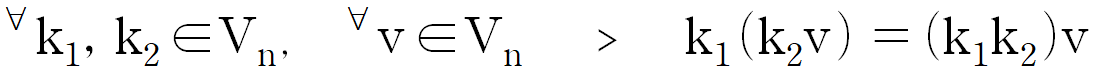 2. (V, +, ·)는 F의 가군이다. - ( +, · 의 두 연산이 있고, 결합법칙과 교환법칙이 성립한다. )