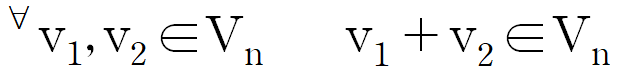 i) 덧셈에 대해 닫혀있다. 임의의 벡터 v1과 v2가 벡터공간 V에 있다면, v1+v2도 벡터공간에 있어야한다.