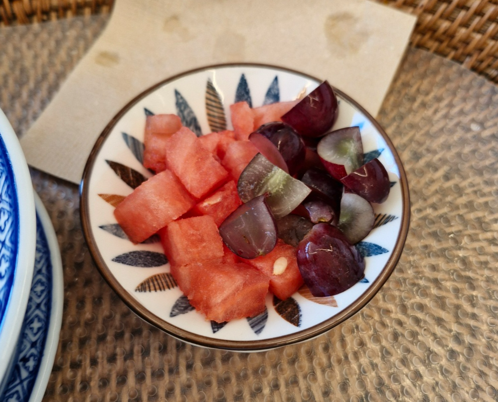 이 종지가 거의 숟가락 2개 크기 정도로 작았는데 저정도 양밖에 안줍니다.... (포도 2알, 수박 1조각 수준)