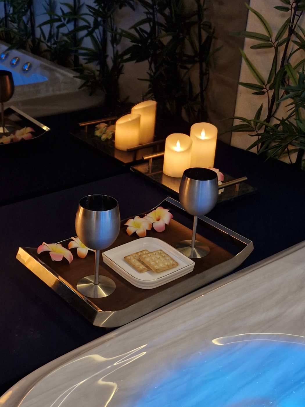 족욕을 할 때 스파 음료수로 와인 or 포도주스를 선택할 수 있습니다.