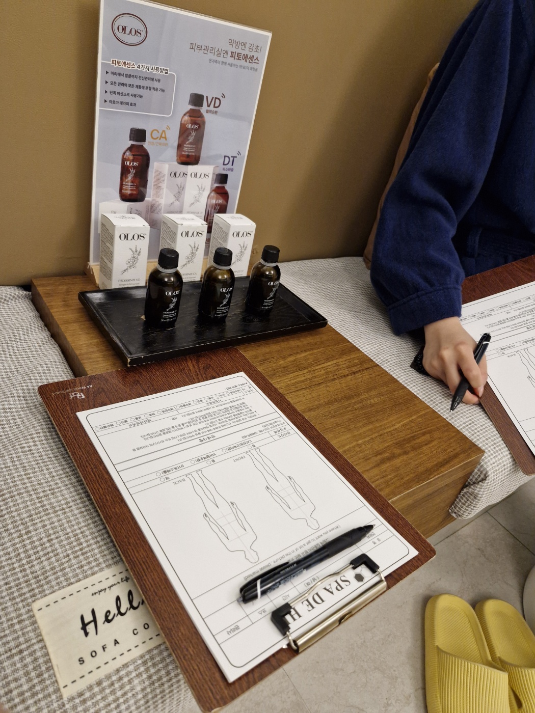 처음엔 족욕을 하면서 마사지를 집중으로 받고 싶은곳, 상처나 주의해야할 점 등을 작성합니다
