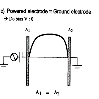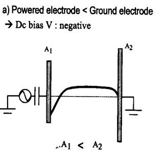 상부와 하부의 전극의 면적비가 다르면, DC bias가 달라지는데