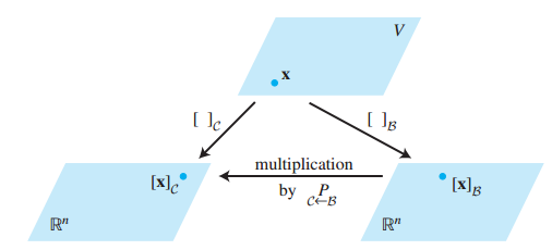 우리는 앞에서 basis를 배우며, basis에 따라 다르게 표현할 수 있다는걸 알게 되었다. 그에 따라 coordinate vector가 바뀌는것도 알게 되었고 아래 그림을 참고해보자
