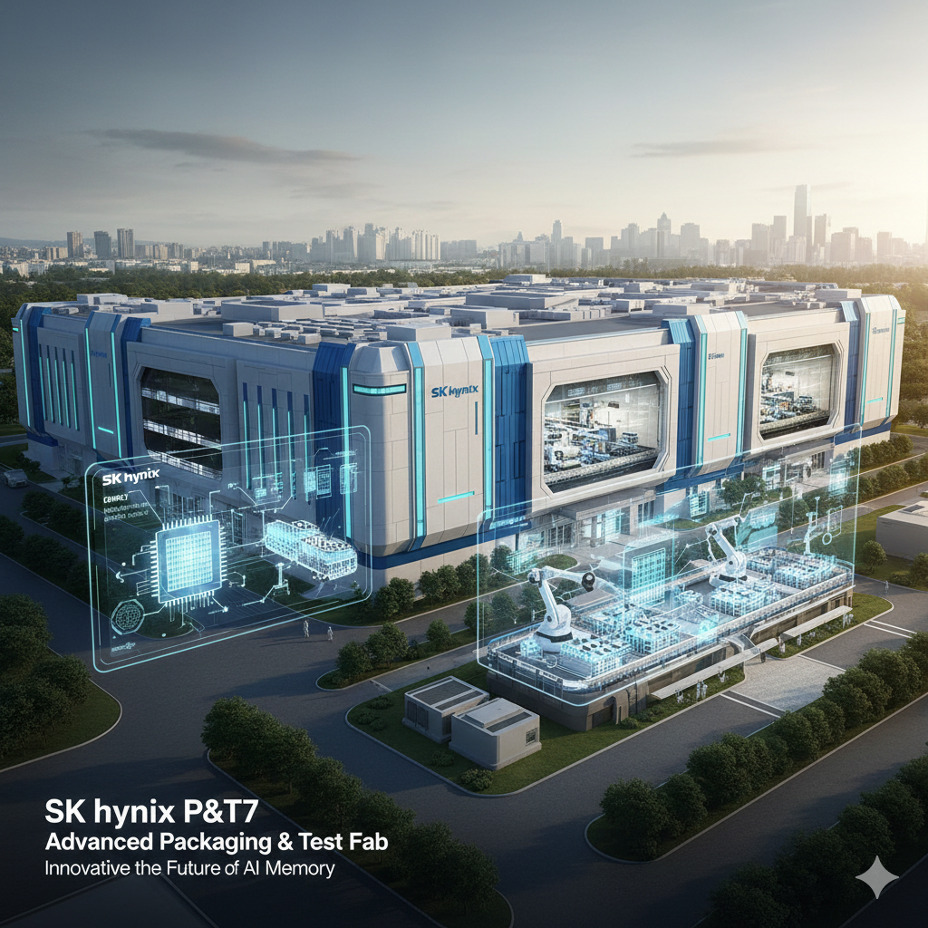 SK하이닉스가 청주 테크노폴리스에 건설하는 P&T7(Package & Test 7) 팹은 2027년 완공을 목표로 합니다. 19조 원이라는 천문학적 금액은 이 시설이 단순한 조립 라인이 아닌 '전공정급 후공정 팹'임을 시사합니다.