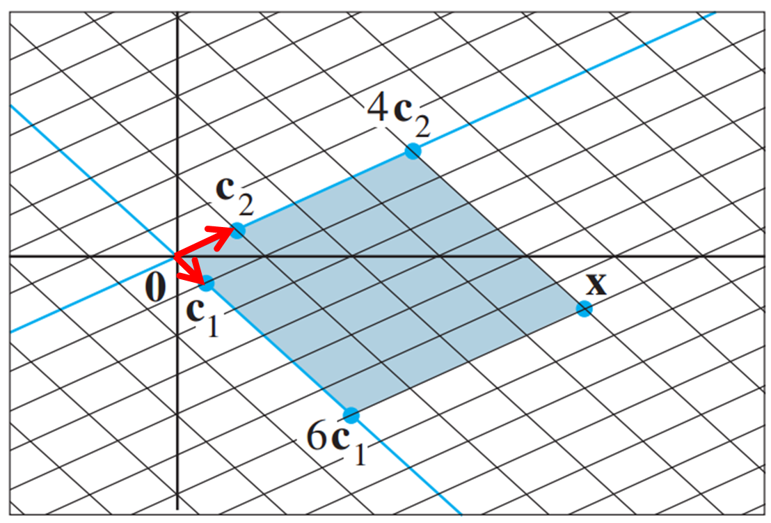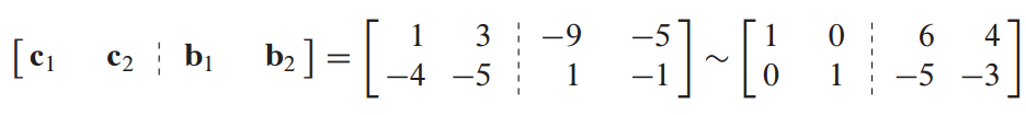 이때, x1, x2는 [c1 c2 : b1] 첨가행렬을 row reducing 해서 [I : [b1]c] 꼴로 나타내고, y1 y2도 마찬가지로 row reducing 해서 찾아야 한다.