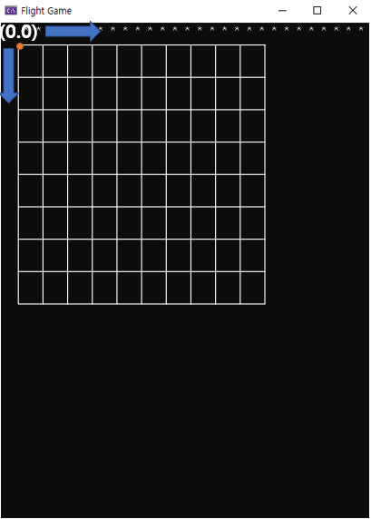 콘솔창에서 좌표는 시작할때 커서가 위치하는 처음 왼쪽 상단이 (0,0)이고 오른쪽으로 갈수록 x값 증가, 아래쪽으로 갈수록 y값이 증가하는 개념이다.