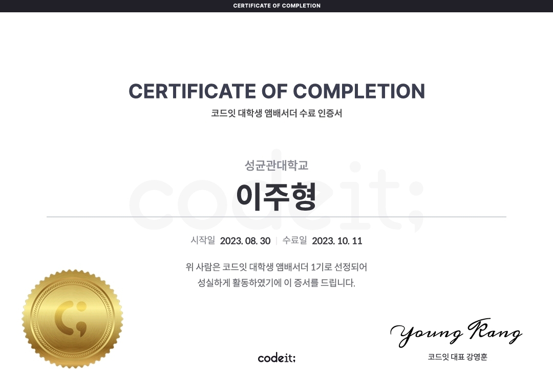 2023년 10월 11일, 코드잇 앰배서더 1기 수료식이 진행되었다.