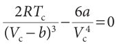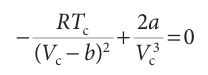 위 두 식을 연립해서 정리하면, 임계온도에서의 부피(V_c), 온도(T_c), 를 우선 구한 후에, 반데르발스 식에 넣어서 압력(P_c)을 구할 수 있다.