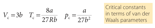 반데르발스 상태식을 이용해 이 임계점의 여러 인자들의 값을 구할 수 있다.