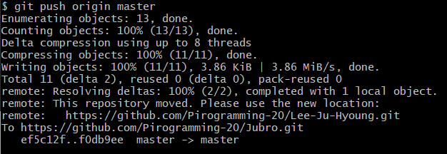 그래서 내가 push하려는 레포지토리를 pull해서 수정사항과 merge가 되었고,