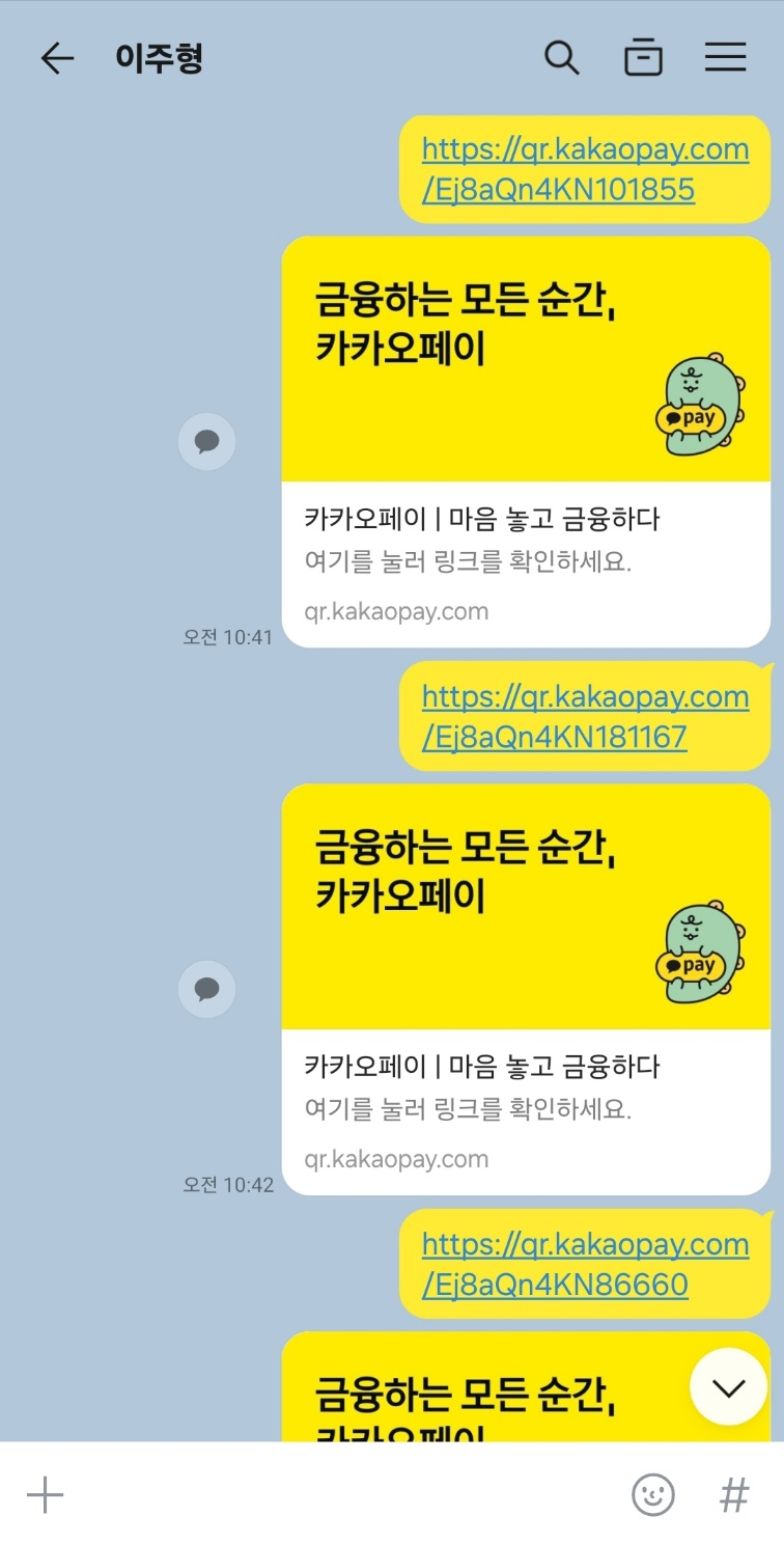 똑같은 1원 송금 링크인데, 이상하게 다 숫자가 달랐다.