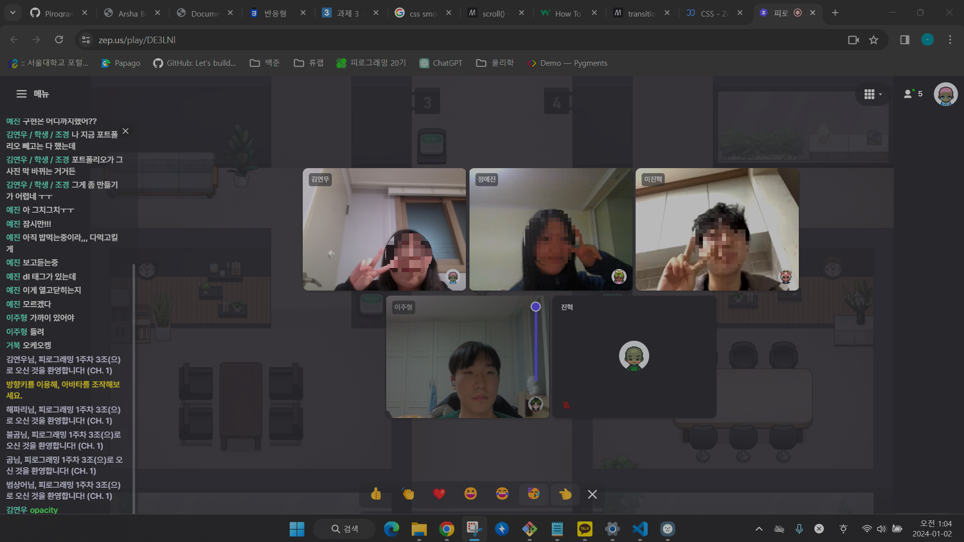 그리고 매주 팀과제도 있어서, 팀을 짜주는데 나는 모든 팀 활동에서 항상 1등을 했다 ㅎㅎ (이건 아마 피로그래밍 역사상 최초 가 아닐까...ㅎㅎ)
