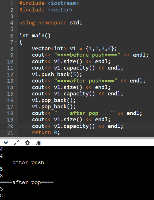 capacity또한 변하긴 하는데, 2배 단위로 늘어나고, pop과 같이 요소를 삭제해도 다시 줄어들지 않는다.