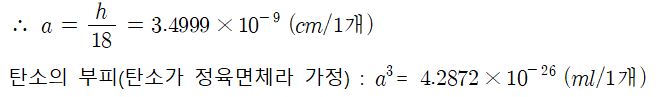 4. 탄소 원자의 크기와 부피(스테아르산의 탄소원자는 18개이다.)