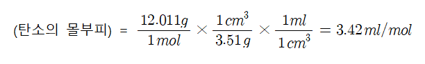 탄소의 몰부피(다이아의 밀도가 3.51g/cm 인 것을 이용해라)