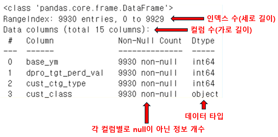 | df.info | 데이터 타입, 각 아이템 개수 등을 출력함 | ![]() |