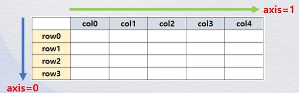 ⚠️여기서 axis는 스캔하는 방향으로, axis가 1일때는 가로 방향(column)을 스캔하고, axis가 0일때는 세로방향(row)을 스캔한다. 그래서 column을 제거하고 싶은데, axis=0을 준다면 오류가 발생하니 주의!