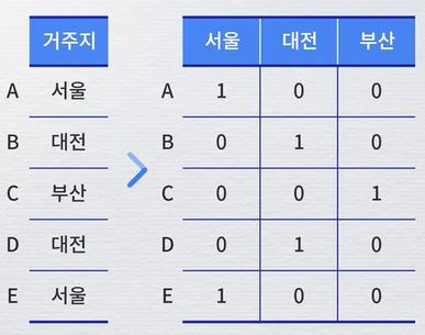 One Hot Encoding : 하나의 데이터만 1, 나머지는 0으로 만들어주는 방법