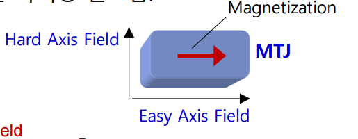 MTJ 가로 세로 비율이 다를때, 더 긴쪽을 Easy Axis라고 하고, 더 긴쪽으로 정렬되는 것이 에너지적으로 안정된다.