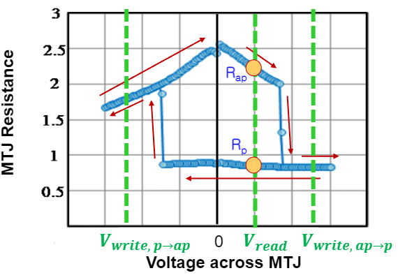 MRAM wirte하면 자유층을 parallel > anti-parallel , anti-parallel > parallel 로 바꾸는 두가지 경로가 있을것이다.