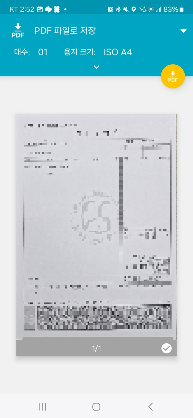 1. 한장만 빠르게 pdf 변환 하고 싶은 경우