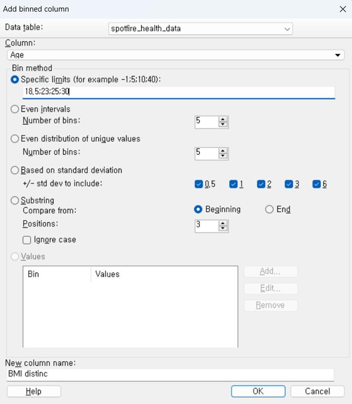 Binned Column은 기존에 있는 Column들을 Grouping해주는 새로운 column을 만든다.