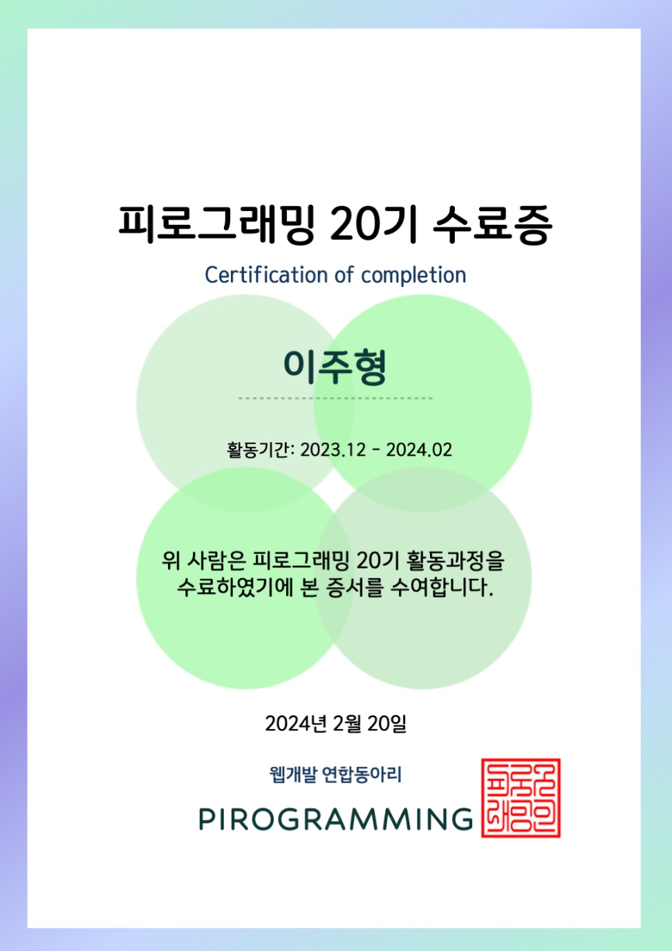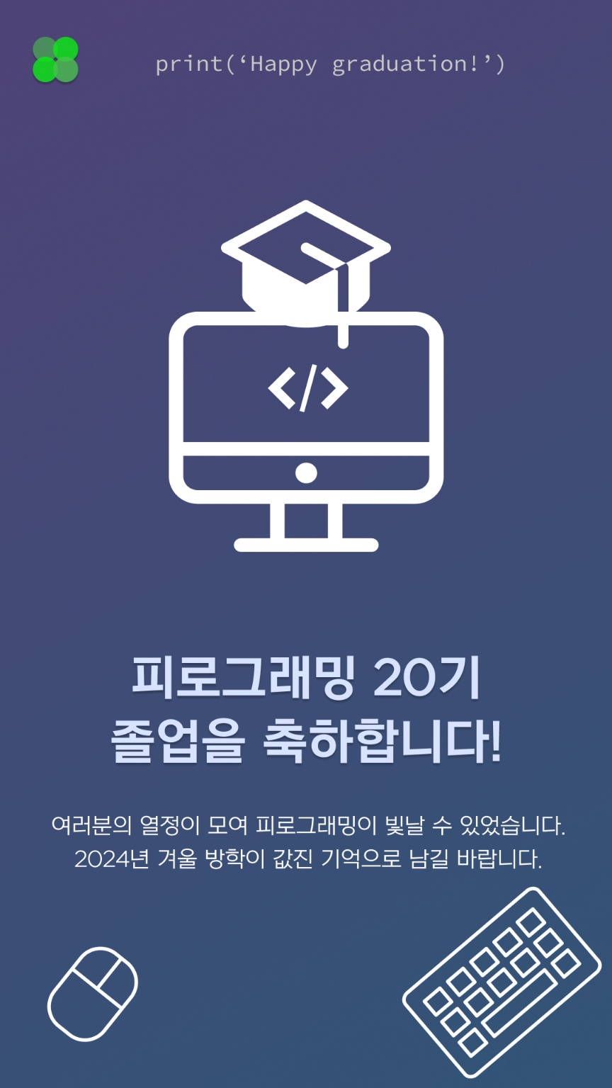 겨울방학 몰입했던 피로그래밍 20기 활동이 끝이 났다