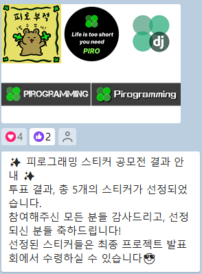 다음에 피로그래밍 활동하시는 분들도 꼭 스티커 공모전은 참가해보시길~!😀😀